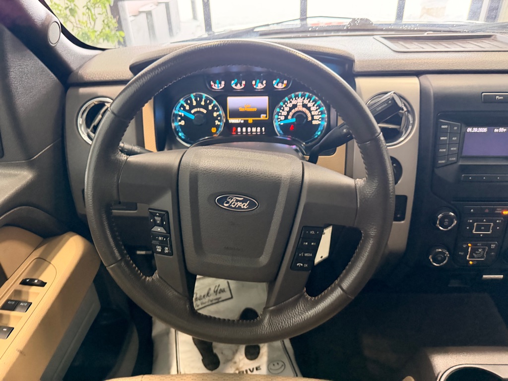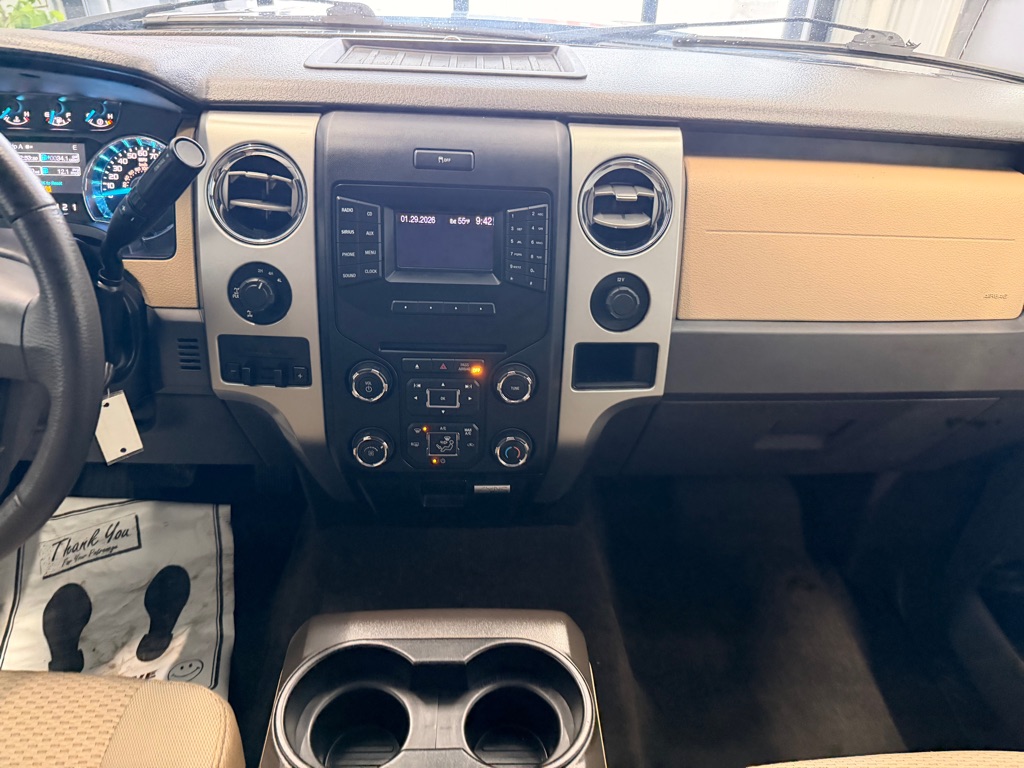This 2013 Ford F-150 XLT SuperCrew 4x4 combines proven power, capability, and everyday comfort, making it a dependable full-size pickup for work or family use. Powered by a 5.0L V8 engine paired with a 6-speed automatic transmission, it delivers strong performance, confident towing, and smooth acceleration. The SuperCrew cab provides a spacious interior with four full-size doors, cloth bucket seating, and practical storage throughout. Standard features include power windows and locks, air conditioning, cruise control, steering wheel-mounted controls, and a multifunction driver information display. Safety highlights include AdvanceTrac with Roll Stability Control, multiple airbags, traction control, and anti-lock brakes. On the outside, chrome accents, alloy wheels, running boards, and a durable pickup bed add both style and utility. With EPA ratings of 14 MPG city and 19 MPG highway, this F-150 balances V8 strength with everyday usability, making it a versatile and reliable truck for a wide range of needs.