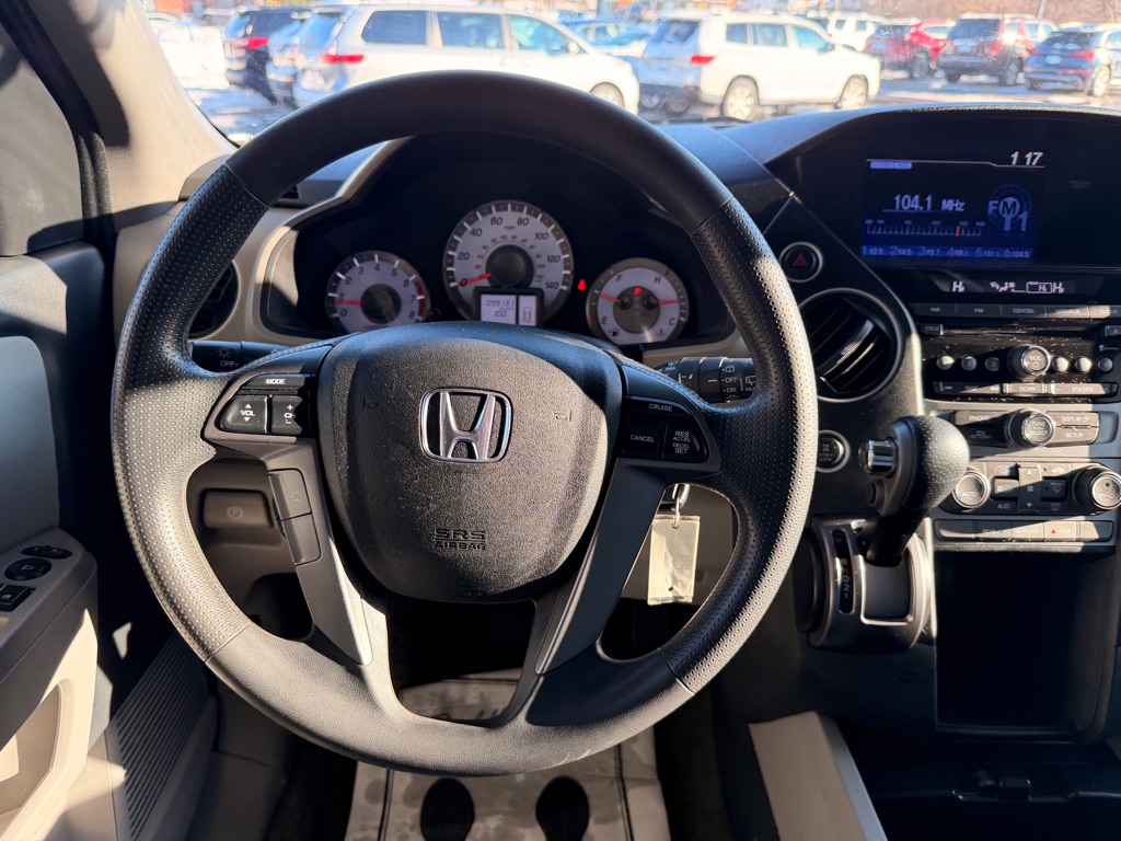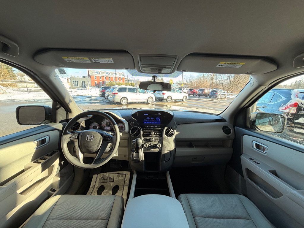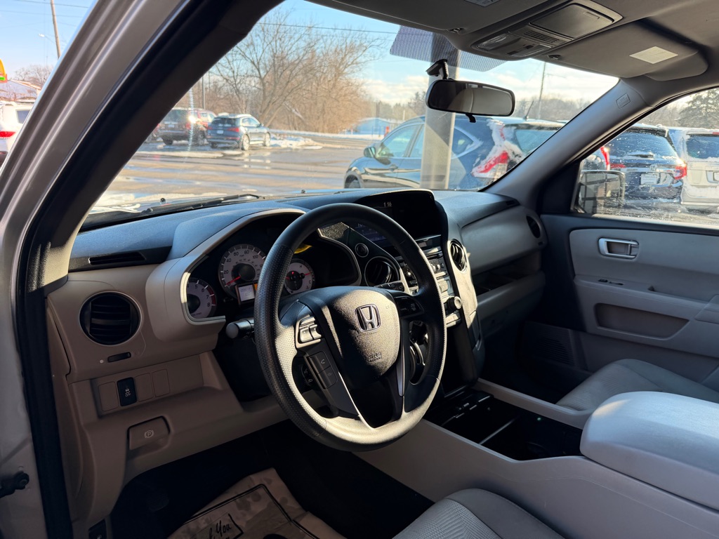 This 2014 Honda Pilot 4WD LX is a dependable and versatile midsize SUV designed to handle daily driving and family adventures with ease. Powered by a strong 3.5L V6 engine paired with a smooth 5-speed automatic transmission, it delivers confident performance along with the added traction of Honda's 4WD system. Finished in Alabaster Silver Metallic with a gray interior, this Pilot offers comfortable seating for up to eight passengers and a practical, well-thought-out cabin. Features include a backup camera, Bluetooth hands-free connectivity, a multi-information display, tri-zone seating, and ample cargo space with folding rear seats for added versatility. Safety is a priority with front, side, and curtain airbags, stability and traction control, anti-lock brakes, and tire pressure monitoring. With its proven reliability, spacious interior, and all-weather capability, this 2014 Honda Pilot is an excellent choice for families or anyone needing a capable and comfortable SUV.