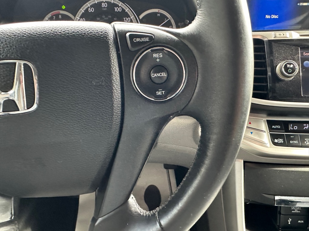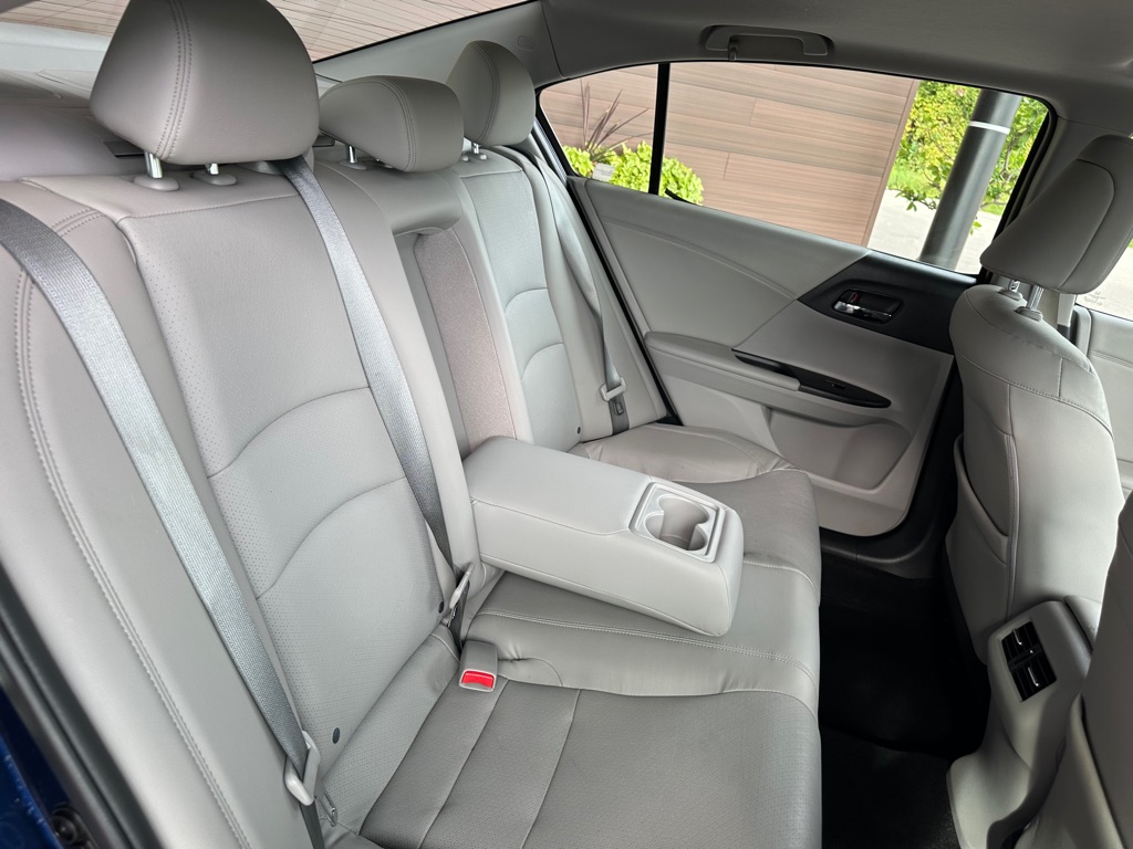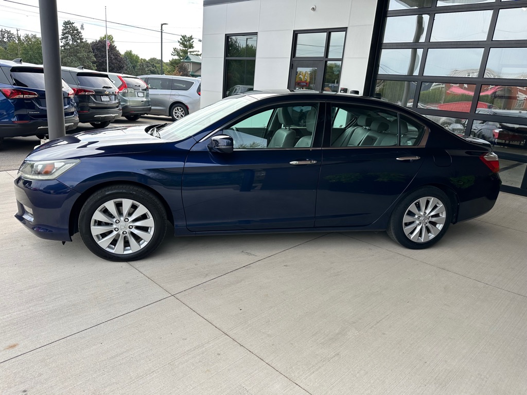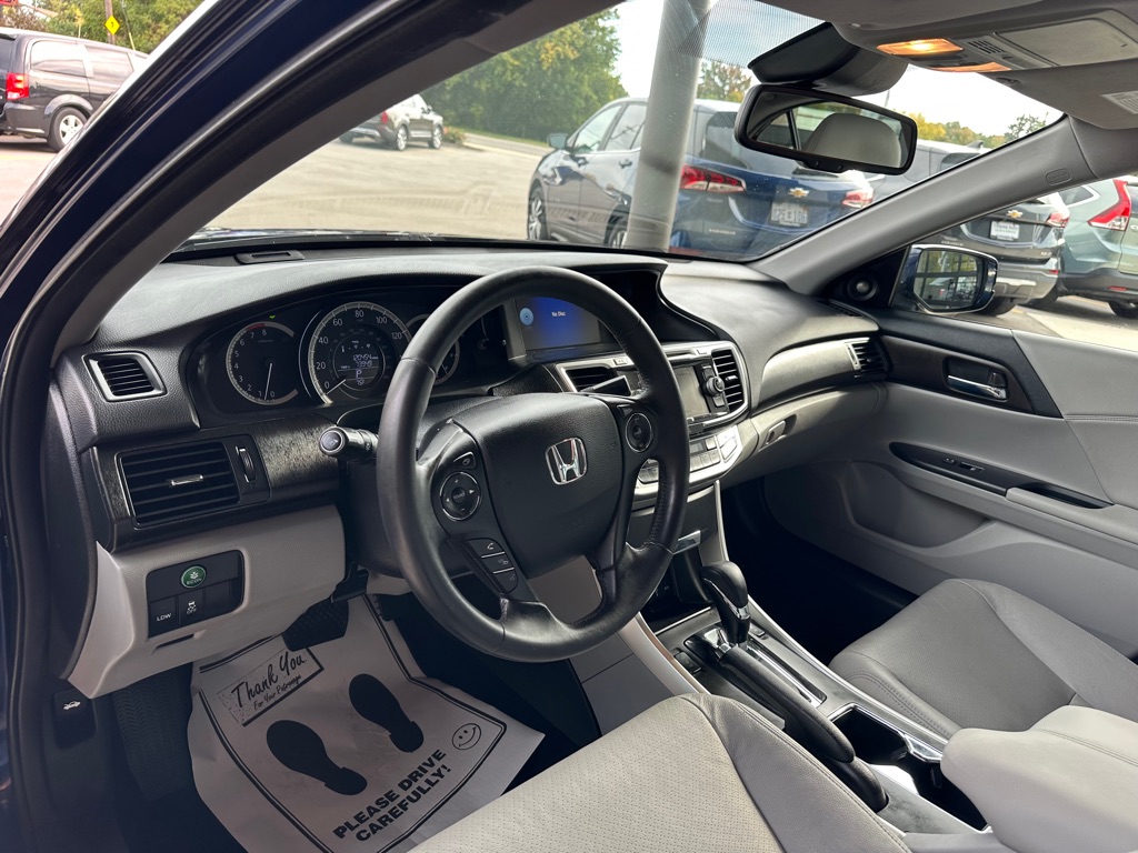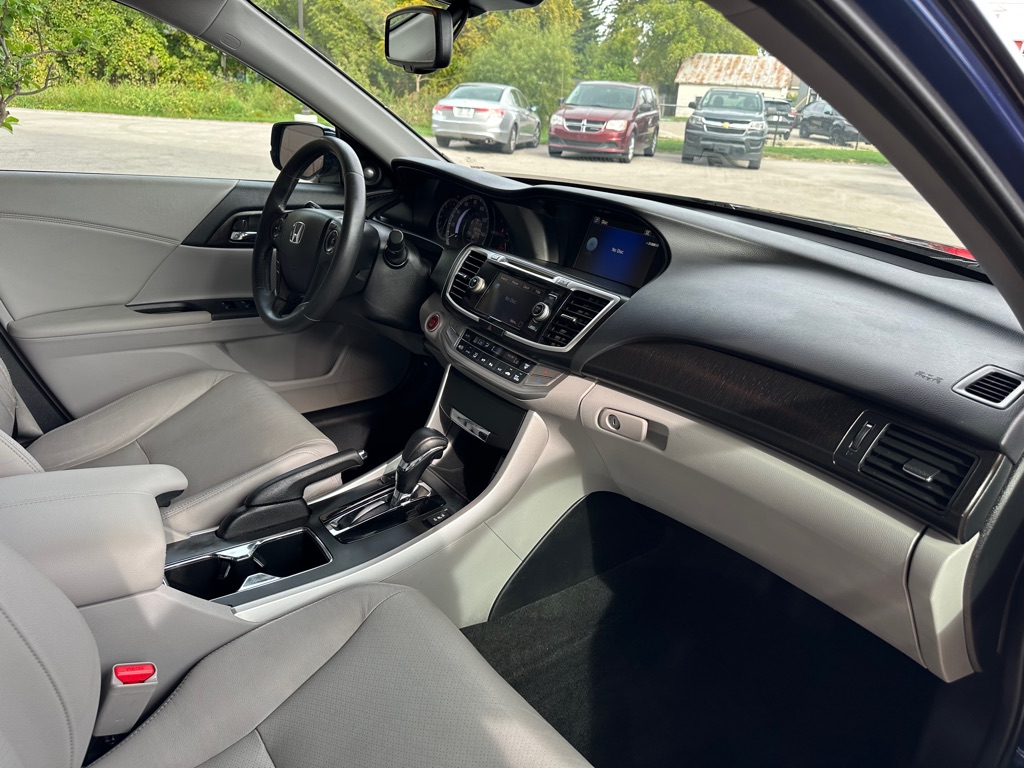 This 2015 Honda Accord EX-L V6 blends performance, comfort, and efficiency in a sleek sedan package. Powered by a 3.5L V6 engine with a 6-speed automatic transmission, it delivers a smooth ride with up to 34 MPG on the highway. Inside, the Accord offers leather-trimmed, heated front seats, a 10-way power driver's seat with memory, and dual-zone climate control for comfort. Tech features include a premium 360-watt sound system with 7 speakers, Bluetooth HandsFreeLink, dual LCD monitors, and a rearview camera with LaneWatch right-side camera for added safety. With Forward Collision Warning, Lane Departure Warning, Side Curtain Airbags, and Vehicle Stability Assist, the Accord ensures peace of mind on every drive. The stylish Obsidian Blue Pearl exterior pairs with a refined gray leather interior for a modern, upscale look. Practical, reliable, and feature-packed, this Accord EX-L V6 is an excellent choice for daily commuting or long road trips.