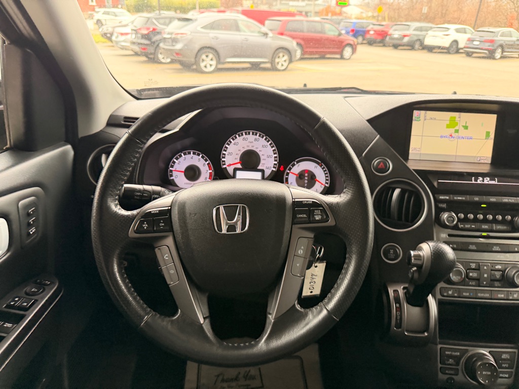 This 2015 Honda Pilot Touring 4WD is a fully equipped, family-ready SUV with the capability and comfort you need for everyday driving or long-distance trips. Its 3.5L V6 engine paired with 4-wheel drive delivers confident performance in all seasons. Inside, the Touring package adds premium features such as leather seating, heated front seats, a power moonroof, and built-in navigation. A rear DVD entertainment system with a dedicated screen keeps passengers entertained on the go, while tri-zone climate control, Bluetooth HandsFreeLink, and a power tailgate make daily use easier. Safety is a priority with side-curtain airbags for all rows, lane departure warning, stability control, and a rearview camera. With seating for up to eight and a versatile fold-flat 3rd row, the Pilot offers plenty of space for family, friends, or gear. Overall, this Pilot Touring 4WD blends reliability, practicality, and comfort into one well-equipped SUV.