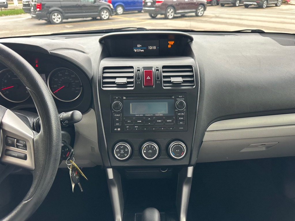 This 2015 Subaru Forester 2.5i PZEV is the perfect combination of versatility, safety, and all-weather capability. Powered by a 2.5L 4-cylinder BOXER engine paired with a CVT automatic transmission, it delivers smooth power and impressive efficiency-up to 32 MPG on the highway. Subaru's legendary Symmetrical All-Wheel Drive ensures excellent traction and control on rain, snow, or gravel. Inside, the Forester offers a roomy, comfortable cabin with gray cloth upholstery, air conditioning, and a 6-way adjustable driver's seat. Tech features include a 4-speaker audio system with Bluetooth, USB and AUX inputs, and steering wheel audio controls for seamless connectivity. Safety is a top priority, with multiple airbags, Vehicle Dynamics Control, ABS brakes, and a rearview camera for added confidence. Practical touches like fold-flat rear seats, roof rails, and 17'' alloy wheels make this Forester ready for any adventure-from daily commutes to weekend getaways.